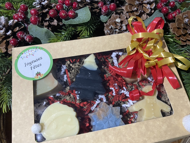 Retrouvez dans ce coffret festif nos six savons aux motifs de Noël :